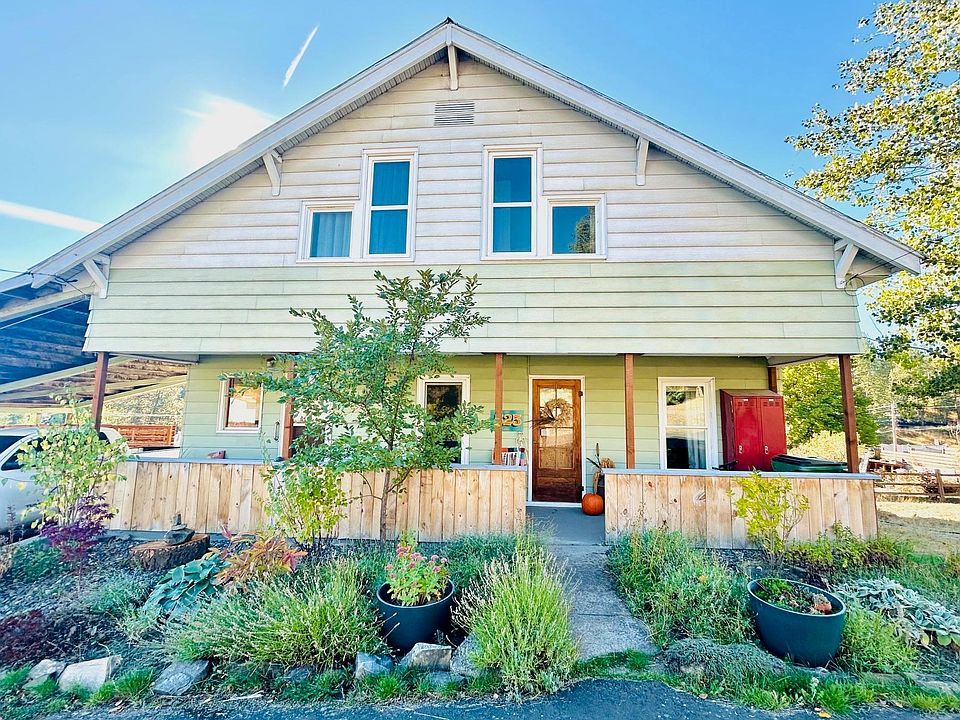 MLS# 286398 Looking for a large vintage home in Palouse? This charming property has it all! Three levels and room for everything! On the main floor the entry door flows right into the kitchen. The designated dining room opens out onto a large covered porch, and due to this well situated lot the view from the dining table feels like it could be from a treehouse. Durable laminate plank floors, character building moldings and beautiful doors grace the spaces. Upstairs offers a landing space large enough to be considered a den or an office. Three more bedrooms and one large bathroom complete the space. Don't forget to look at the transom windows! The basement is a massive storage space, laundry, utility and walks-out into the backyard...AND WHAT A YARD!! Huge. The fort of ones' dreams, structures for screening, shading and storing, relaxing, celebrating. Fruit and native trees and shrubs with thoughtful xeriscaping. This is a house you need to see in person. Seller is motivated! Buyer to verify square footage.