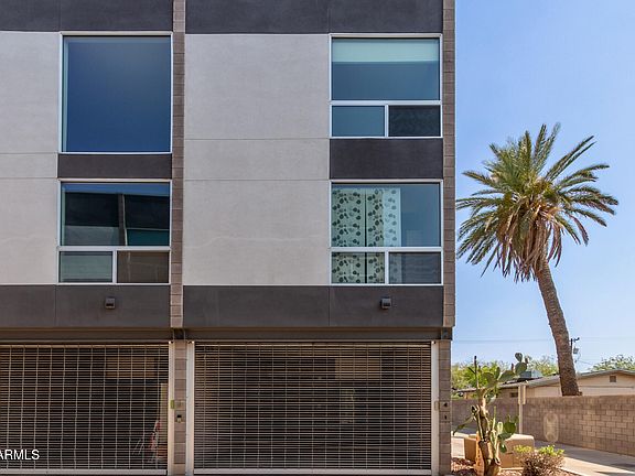 READY for your next move? Look no further! This popular upgraded condominium is centrally located near the heart of downtown Phoenix. Close to shopping, restaurants, coffee shops, museums, the Valley Metro rail system and much more. Discover what this 3-level modern home has to offer including 2-bedrooms, 2-bathrooms, 2 living spaces with a versatile design on 2 separate floors, and a 1.5-car garage. Explore the industrial loft design with high wood & corrugated metal ceilings, a neutral palette, large windows on each floor, accented with nice brick walls, and polished concrete floors throughout the main living spaces on the first & second floors, and a well-designed patio, perfect for enjoying a morning cup of coffee. The gorgeous eat-in kitchen is located on the second floor and features Quartz countertops, elegant cabinetry with modern lighting, built-in SS appliances, a kitchen island, and a closet pantry. Both bedrooms are located on the 3rd floor. The large primary bedroom features soft carpeting, a contemporary wooden closet, and an ensuite bathroom with a tile shower from floor to ceiling, and a single vanity. The additional bedroom also features soft carpeting with a private bathroom. Don't miss the stacked laundry area located on the first floor under the stairs and the amazing city views from every window! Fully fenced backyard patio is ideal for relaxing. Move-in-ready!!