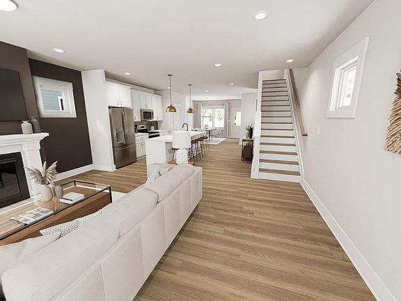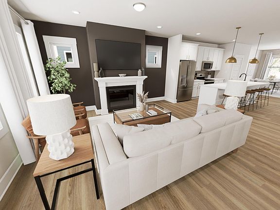 The Scissors floor plan by Garman Homes in Wendell Falls, part of the Roshambo Collection, offers about 1,820 sq ft with 3 bedrooms, 2.5 bathrooms, and a 2-car garage. The main level features a welcoming front porch that flows into the family room, with the kitchen as the centerpiece for entertaining and a cozy dining area tucked toward the back. Upstairs, the spacious primary suite includes dual walk-in closets, while two additional bedrooms share a cleverly designed Buddy Bath, alongside a conveniently located laundry area and smart storage solutions. Paired with the Cigar Lounge interior package, this home exudes a timeless, sophisticated vibe with rich textures, leather accents, bronze finishes, and moody layered details that create the ambiance of a refined lounge. The overall effect is effortlessly cool, turning the Scissors plan into a warm, elegant retreat that balances everyday comfort with designer style.