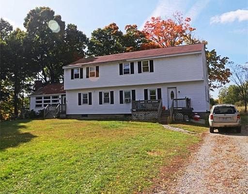 Great home for the extended family! This one is for you! Spacious Colonial located on private 2+ acre lot. First floor offers family room, living room with hardwood floors, huge kitchen and guest bedroom or use as a den/office plus a full bath that just needs your finishing and a half bath. Upstairs has 4 bedrooms. Master suite has walk-in closet, full bath and a slider that leads to a balcony. Attached illegal apartment has 1 bedroom, kitchen, fireplaced living room, enclosed porch and it's own laundry with washer and dryer! Double driveways offers plenty of off street parking.