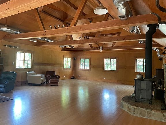 LOFT LIVING. Open floorplan, high ceilings, hardwood floor, a/c, ceiling fans, woodstove. Kitchen with electric stove, two ovens, m/w, dishwasher and refrigerator/freezer. Small (bedroom?) room with closet. Full bath with shower over tub, and additional half bath. Upstairs space, aprx. 2500 sq.ft., over unoccupied lower level. Spaceous deck with pasture and panoramic views. Stairs as well as ramp access. Outbuilding has washer and dryer for tenant use. Outdoor parking space for maximum two vehicles. Upstairs loft space best suited for one or two occupants. Property not child-proofed. Unit on owner's property. Strict noise policy to maintain quiet, serene rural atmosphere. No smoking, no pets. Water, electric & garbage included. 6-month to one-year lease with approval of application and credit report. $3500 security deposit. Off-street, outdoor parking for max. 2 vehicles. Property is fenced with security gate.