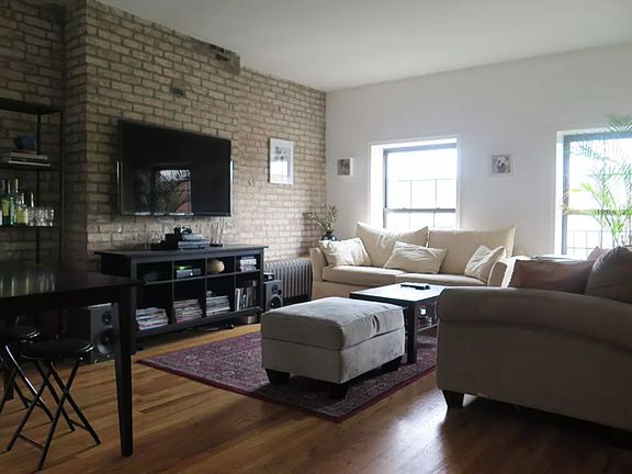 o 3 Bedrooms + 2 Bathrooms o Super Spacious Living Room and Bedrooms o Open Kitchen with Stainless Steel Appliances + Dishwasher o Hardwood Floors o Exposed Brick Walls o Heat and Hot Water Included