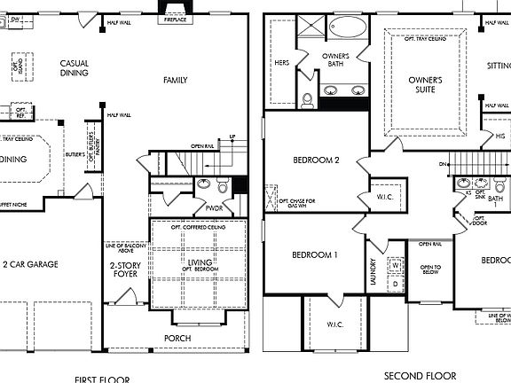 Enjoy an open kitchen and family room. The living room is accented by a coffered ceiling, while the dining niche offers extra storage. Upstairs you'll appreciate a laundry room and his-and-hers closets in the owner's suite.
