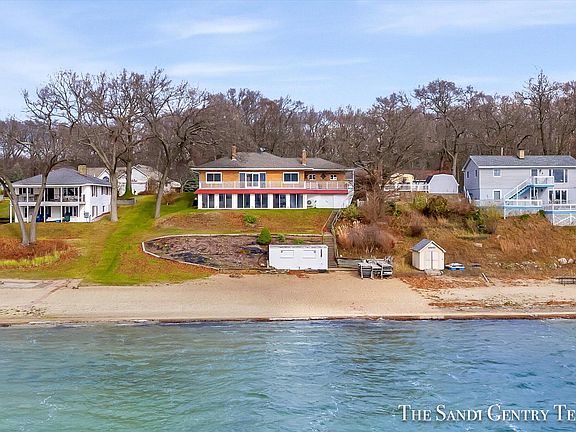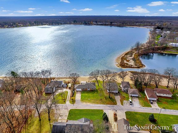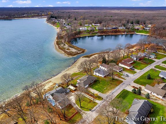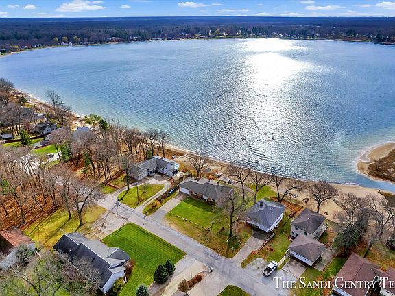 Discover the perfect blend of relaxation and opportunity with this beautiful Wolf Lake property, offering 100 feet of sandy beachfront. Located on an all-sports, spring-fed lake, this home is a dream for water enthusiasts and takes full advantage of stunning westerly views from nearly every room.