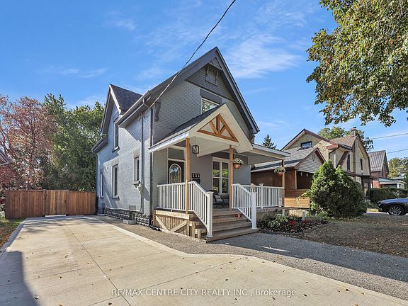 Step into the charm of a century home that has been thoughtfully renovated from top to bottom. The interior includes a large primary bedroom that comfortably fits a king sized bed with 3-piece ensuite and walk-in closet. Heated floors in the upper bathrooms provide extra comfort. The main floor features an open-concept layout with a dining room highlighted by an accent ceiling. Quartz countertops and smart light switches are found throughout the home, along with updated trim. Outside, there's a welcoming covered front porch. A new concrete driveway (2021) and walkway lead to the backyard shed, complemented by a spacious patio and pergola. A new fence and gate were added along the east and south sides of the property (Sept 2025). Great privacy from all surrounding neighbours. The finished basement adds versatile space for a family room, recreation area, or playroom. Major updates include roof (2019), driveway (2021), basement water proofing with added sump pump (2023) and sanitary line upgraded with new dual clean-outs (2022).