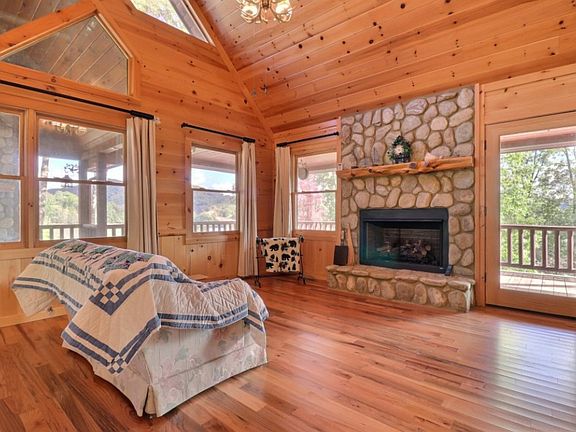 A log cabin that sits on a little over 1 ac of wooded land to feel secluded, but provide minimal neighbors for a community feeling in the High Meadows Subdivision. A permanent residence, mountain escape or rental are all options! Open floor plan combines kitchen w/bar, dining area & LR w/FP & windows that stretch w/cathedral ceilings. Guest room on main for hosting friends & family! Master on upper level w/private balcony, spacious walk-in closet & a bonus loft area. Unfinished basement grants the ability to use however you see fit. Create a cozy back porch environment w/seating around the outdoor FP to take in the year round & long range mountain views! Located close to Blue Ridge, Lake Blue Ridge, hiking trails & more outdoor adventures!