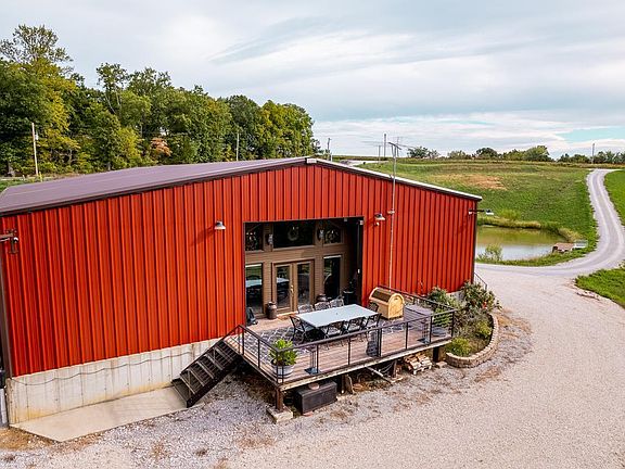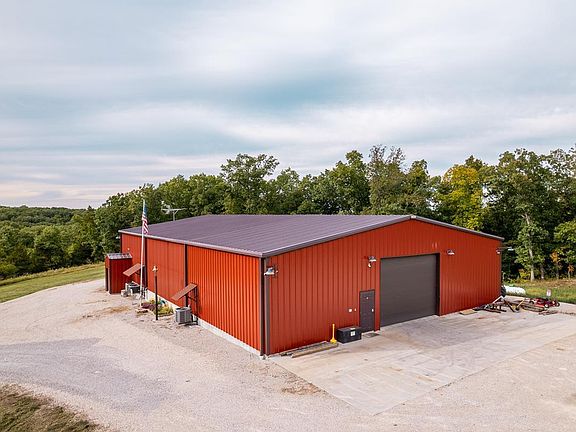 Custom-built home/shop on 8.3 ac. Excellent setup for luxurious comfort, an attached workspace for business needs, & place to store vehicles/toys! Red iron building is 5400 sf, w/ 1800 sf of living space, 3600 sf 2-bay insulated & air-conditioned shop. 2 bed/2.5 bath home w/ office that can be an extra bedroom. Master suite w/ walk-in closet & master w/ double sinks, whirlpool tub, & walk-in shower. The home is incredibly secure. Each room has a fire escape door that locks from the outside. The building comes w/ security & camera system. Open living room & kitchen area w/ natural light from the large windows & walk-out patio area. Garage door on patio can be lowered over the windows to fully lock down the home. Generac 21kW Backup Generator LP system & a 500-gal Propane tank. 3600 sf shop w/ 2 bays, a/c/heat, concrete floors, & break room. Stocked pond & dock. Perfect "mixed-use" home, great full-time residence, weekend retreat, or duck camp for your nearby waterfowl hunting property!