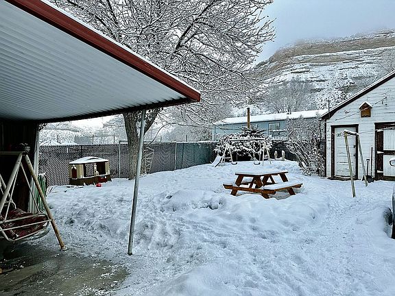 Welcome to Helper! This charming three-bedroom home is on a quiet street with a fantastic view of the surrounding cliffs and is within walking distance of the city park, historic main street, and hiking trails. The house features two bedrooms on the main level, a bathroom with a shower and tub, a kitchen, and a living room with original pine flooring. The third bedroom is downstairs, along with an unfinished half-bathroom with a new functioning toilet, a storage room, and a laundry area with lots of shelving. The yard includes a mature shade tree, ornamental shrubs, and plenty of room for a garden. There is also a large garage separate from the house with shelves and a workbench. The house and garage roofs were installed in December 2022. This house is ideally located in a quiet and safe neighborhood full of good people. Helper provides all the necessary amenities, a historic allure, and artistic entertainment during the summer. Many will agree that there isn't a better place to live!