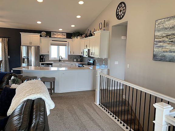 Enjoy this beautiful 4 bedroom, 3 full bath ranch home only a minute to Fawn Creek CC. This home has been completely remodeled with many new upgrades. The main level features nine-foot ceilings throughout the 3 bedrooms, 2 full baths and laundry with plush new carpet/LVP flooring. The vaulted ceiling in the kitchen has numerous cupboards, spacious working quartz counter, tile backsplash, and stainless-steel appliances. Appliances stay with the home. The lower level has a wide open living space, built in 32sq ft Liberty safe, large bedroom and full bath. Enjoy the nice composite deck with a landscaped yard and no neighbors behind you. The 25’x28’ extra deep garage is heated and features: shelving, epoxy bench, deep stainless sink. Additional storage space outside including a 12’x12’ shed. Call for a private showing today! 563-419-4186