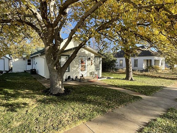 Welcome to 525 Kansas Avenue in Brewster, Kansas! This well kept and cared for bungalow offers 1,536 square feet of interior living space and 12,800 square feet of land that is ready to be put to good use by a new owner. The yard and matured trees surrounding the home are fed by an underground sprinkler system in both the front and rear of the home. A detached garage and an ex-carport-turned-garage are both readily available on the north side of the property with access via a large driveway off one of Brewster's main drags. Having a massive backyard, there is plenty of open space to enjoy outdoor hobbies or create a new environment, and there is also a shed for additional outdoor storage. Access into the home is given through three doors, one to the front yard, backyard, and the driveway. Upon entry through the front door, you'll find a sitting room area immediately to the left and the main living area straight ahead. Beyond that is what is currently serving as a dining area. Also off the living area is a smaller room, currently used as an office space. Past the current living and dining areas, a hallway leads to the kitchen one direction and 3 bedrooms, a full bathroom, storage space, and access to the driveway intertwined in the other. A U-shaped kitchen offers ample cabinetry. Past the kitchen is the laundry/utility area and ultimately access to the back yard. This home is primed and ready for a new owner. Call today for more information or to schedule a tour of the property! FEATURES: 3 bedrooms - 1 full bathroom - radon mitigation system - 2 detached garages - mature trees - fenced yard - underground sprinklers - u-shaped kitchen - living room - dining room - updated a/c unit - updated heating unit - updated plumbing - garden shed - vinyl siding - refrigerator - oven/range - dishwasher