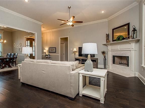Gorgeous French Country home in Coquille subdivision; beautiful formal dining room w/coffered ceiling; spacious living room w/corner fireplace; crown moulding, wood floors; luxurious kitchen w/center island/breakfast bar, granite, ss appl, pantry, backsplash, butler's pantry, built-in office nook, mudroom; sunny breakfast room; elegant master w/tray ceiling, huge walk-in closet; posh ensuite w/sep shower & tub, dual vanities; nice laundry room w/cabinets & sink; brick patio, fenced yard; amazing location!