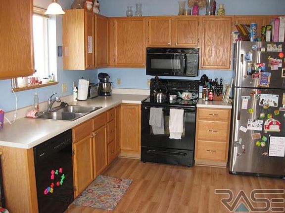 Affordable 4 bedroom, 2 bath home with walk out lower level. Vaulted ceiling in living, kitchen, dining area, updated 15 year laminate floor in kitchen, dining and foyer areas, new faucet and hardware in kitchen, main floor bath updated with new paint, vinyl, stool, faucet and sink, coat closet in foyer, spacious family room with walk out to cement patio, nice sized yard, not far from city park. Garden area too!! New overhead garage door in 2018, extra storage cabinets in garage along with 5 x 10 area for storage.