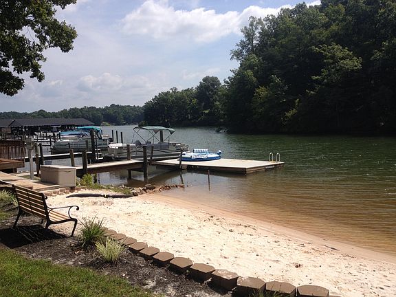 Maintenance-Free Lake Access Brick Ranch with One Level Living, 3 Bedrooms, 2 1/2 Baths and approx, 2,136 sq. feet, 2.92 Acres, Enjoy the lake with your own Covered Dock C6! If you love garages then you will love this home with a 2 car garage attached and a 2 car detached garage! Great Room with wood floors and fireplace. New roof in 2014, painted and flooring installed in attic space for extra storage. HVAC new in 2018. Great beach area to swim, community dock, fire pit and picnic area. Paved Driveway! Only 10 minutes to the Westlake area for shopping, groceries and doctors!
