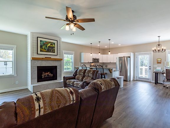 Welcome to Jewel Mason Overlook where the lots spaciously afford privacy yet a friendly neighborhood atmosphere and stage a variety of wildlife on any given day. This nearly-new home offers an open floor plan w/ modern finishes including wood floors on main, laminate on terrace, granite c-tops, custom shaker cabs, S/S apps, shiplap accents, lg breakfast bar, marble FP (gas), custom blinds, modern lighting, & loads of windows to let in the light. Main floor primary suite has a shower/tub, tile flooring, & double-sink vanity. Finished basement offers a huge bonus room perfect for a 2nd LR or game room w/ access to the backyard. Terrace level also has 3rd BR & full BA, laundry rm, HVAC, & nook for an office. Enjoy time on the front porch or back deck taking in the scenery. Huge backyard. Generous parking w/ circular drive, home is close to Meeks Park & Nottely River & 15 min from DT Bville.