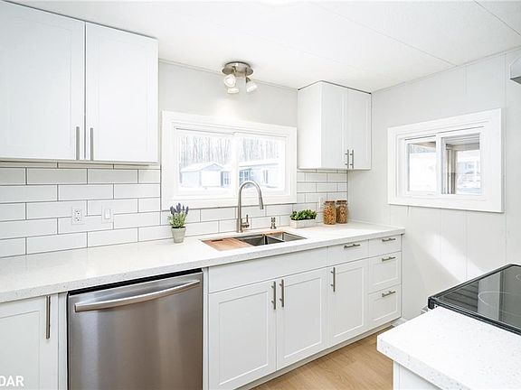 Top 5 Reasons You Will Love This Home: 1) Beautifully updated mobile home with an extensive list of upgrades, including a brand new kitchen, flooring, and windows, creating a move-in-ready experience 2) Bright living room adorned with a cozy fireplace providing ample space for family or guests alongside three comfortable bedrooms 3) Separate dining area with a walkout leading to the deck cultivating an exceptional and seamless indoor-outdoor entertaining experience 4) Convenience is key with everything on the main level, including an easily accessible laundry room and entrance to the carport 5) Perfectly placed just 5 minutes to downtown Midland, offering perks like a private beach and dock access, ideal for leisurely summer days on Georgian Bay. Visit our website for more detailed information. *Please note some images have been virtually staged to show the potential of the home.