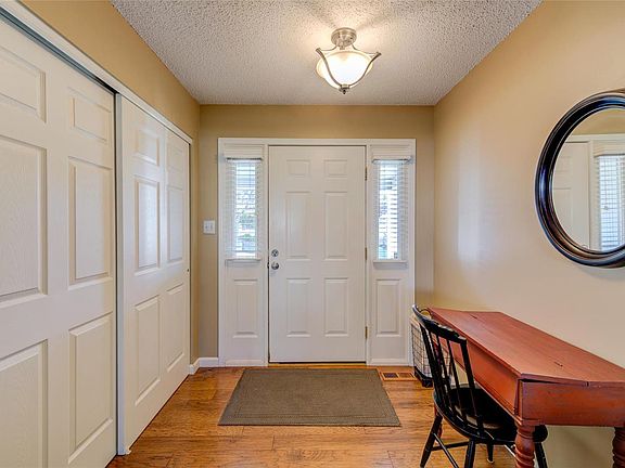 Meticulously maintained ranch home sits gracefully on fenced level, walk-out lot. Have coffee w/friends & family sitting on the covered front porch. Amazing foyer to Great room, boasting some newer lighting, elegant Engineered Wood floors, warm wood-burning fireplace & charming brick hearth. Lg. Spacious kitchen & breakfast Rm. equipped w/oak cabinets, S.S.. gas range, microwave, & dishwasher. Open staircase leads to finished L.L. Main floor Laundry (8x6). Master suite is a generous size (18x11), featuring plush carpeting, comforting ceiling fan & roomy walk-in closet. 2nd and 3rd Br w/new carpet & some fresh paint. L.L. boasting 8-foot ceilings, encompasses both a delightful game room & cozy family room. Completing this delightful abode is an expansive, (20 x 19), 2 car garage. Composite deck offers a delightful space to relax, while the lower-level patio adds to the charm. White six-panel doors, vinyl siding, soffit & fascia, along w/tilt-in windows. Close to many amenities & Hwy 70
