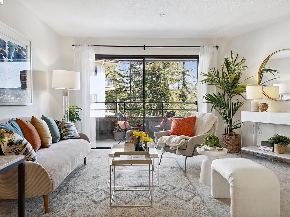 Fantastic Rose Garden 1/1 Condo. Light and airy second floor end unit. Two sets of sliding doors leading to a private covered balcony from both the living room and the bedroom. This makes for a nice inside outside flow. Balcony faces a beautiful wooded view with the Rose Garden across the street. Your own private get-away! Spacious open concept living room and dining room with updated kitchen with breakfast bar. Carpet throughout. Kitchen has granite countertops with plenty of room to work and cabinet space with a laminate floor. Large closets for lots of storage. Large bedroom leads to the balcony. New fixtures in the bathroom with a shower over the tub. In unit washer/dryer. Elevator building for convenience. Dedicated parking spot in gated garage. Rooftop and garden common areas. Near it all! Rose Garden, Piedmont Ave, Grand Lake, Lakeshore, Adams Point, Lake Merritt, Rockridge, Uptown, and Temescal neighborhoods + for convenient shopping, restaurants, bars, bakeries, parks, movies + more. 87 Walkscore! Don’t miss this! Near transportation and freeways.