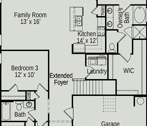 The Langford at Winston Place by Smith Douglas Homes. Flexible one-level living is available in the Langford, punctuated by a light0filled dining area with views of the backyard and access to a covered patio. An adjacent open kitchen with central island overlooks the spacious family room. The owner’s suite, tucked away at the back of the home, feels like a private sanctuary with its spa-like bath and sizable walk-in closet. A conveniently located and extra-large laundry room enhances everyday living and offers optional convenience right into the laundry. If needed, a second floor with bedroom 4 and bath ensuite may be added.