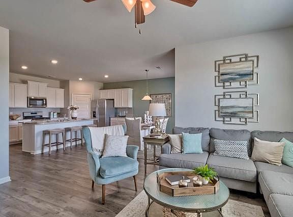 The Cali, 4 bedroom 2 bath 1774 SqFt. ranch style home designed with a spacious family room that expands to a casual dining area. There is plenty of room for everyone to gather round the open island kitchen. The private bedroom suite features dual vanities, separate shower & luxurious garden tub. Secondary bedrooms offer oversized closets for extra storage. Fully Sodded landscaped yard and 3 zone irrigation. Gutters on all sides of the home as well as blinds included on all windows. Your new home is built with an industry leading suite of smart home products that keep you connected with the people & place you value most. Photos used for illustrative purposes and do not depict actual home. THIS HOME IS UNDER CONSTRUCTION. CALL LA FOR CURRENT PHASE OF CONSTRUCTION. Estimate completion AUGUST 2023. *Incentives via preferred lender