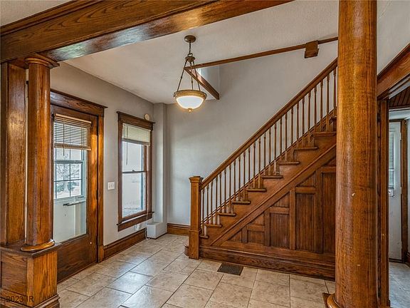 Beautiful 4 bedroom home. Stunning wood columns and staircase add charm and character. Main floor laundry, spacious kitchen, hardwood floors, and new vinyl siding. Kitchen appliances as well as washer/dryer remain with the home.