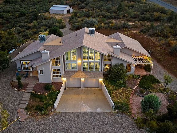 Welcome to this expansive 4,000+ sq. ft. hillside retreat in Prescott, offering breathtaking views and the perfect setting for relaxation and adventure. This unique custom home features two wings, six bedrooms, four full bathrooms, three spacious living rooms, a game room, and a gourmet kitchen, all designed to accommodate up to 22 guests. Enjoy the outdoor amenities including a fire pit, cafe seating, a brand-new hot tub, and horse stalls, all just 10 minutes from downtown Prescott. This beautiful home is nestled in the east-side hills of Prescott, just 6 miles from downtown. The property boasts a great room with 17' floor-to-ceiling windows offering stunning views of the Bradshaw and Mingus Mountains. The gourmet kitchen is a chef's delight, equipped with a 60" drop-down ceiling hood over gas stoves with eight burners and two griddles, all wrapped in a custom granite island. The dining area seats 10, and the living areas feature high-end furniture and unique local decor. The game room includes a ping pong table, foosball table, and entertainment center. For those traveling with pets, up to two dogs are allowed for an additional $15 per night, per dog. The property also offers accommodations for horses, with four stalls available at $50 per stall per night. These can be added to your stay as needed. Located in the quiet suburban community of Lynx Estates, this property offers sweeping views of the surrounding mountains and hills. The neighborhood is eclectic, with custom, high-end homes on large plots of land, providing a sense of privacy and space. The home is conveniently close to town, with easy access to hiking, biking, shopping, restaurants, and more. Smoking is only allowed outside, with ashtrays provided, and is prohibited if Prescott is under a Stage 2 Fire status or above. No outside noise or music is allowed after 10 pm to ensure a peaceful environment for all guests. Check-in begins at 4 pm, and early check-in or late check-out requests can be accommodated if arranged in advance. The property allows up to two dogs, with specific guidelines to ensure no damage or disturbance. Horse stalls are available for guests traveling with horses, with a separate entrance and parking for larger rigs. The home is equipped with full gigabit internet Wi-Fi and numerous workspaces, making it ideal for remote work. A laptop computer is not included, but the property offers a comfortable and productive environment for work-from-home needs.