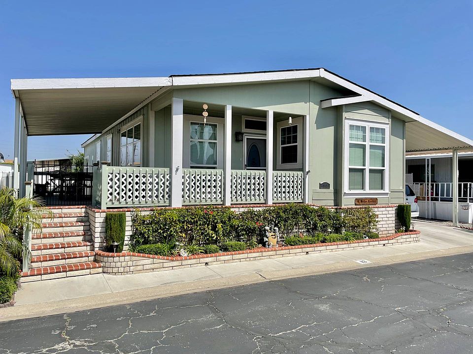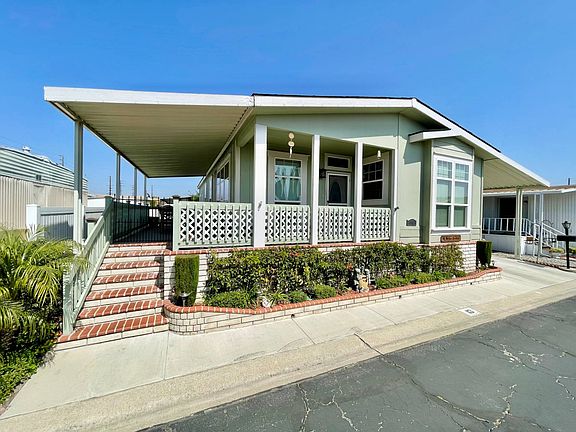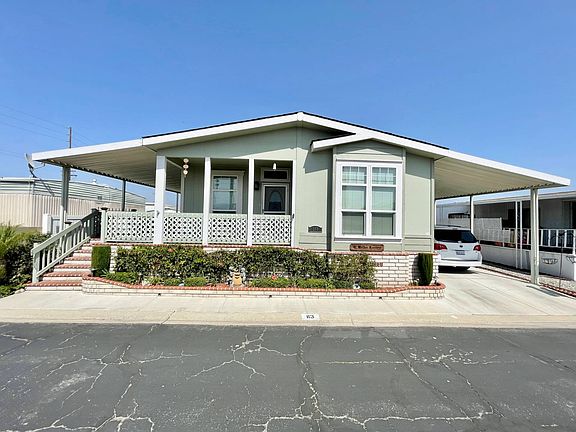 Just Listed! Location, Location, Location! Please Don't miss this perfect opportunity to get into a Gorgeous 3 Bedroom 2 Bathroom Manufactured Home in Desirable Casa Hermosa 55+ Mobile Home Park. This Incredible Home Is An Oasis of Tranquility Inside and Out!! Outside you can sit and relax on your Covered Wraparound Porch and Patio and there is a large Storage Shed and Covered Parking for Two or more Vehicles. Inside, you will find a Gourmet Kitchen with Newer Stainless Steel Appliances, Breakfast Nook, and New Laminate Flooring. From there you're just a few steps from the Great Room featuring Elegant 9' Flat Coffered Ceilings and Extra-High Windows to let the light in. From the Great Room, you'll take a short walk to the Guest Bedrooms and the Guest Bath which offers a High Tech Step-In Bathtub. In the back of the house, you'll be delighted by the Spacious Master Bedroom with a Large Walk-In Closet. The Master Bedroom Suite also offers a huge Master Bath Retreat with Double Sinks, a Large Tile Shower, a Jacuzzi Style Bathtub, and Faux Fireplace that provides all the warmth you need to relax the hectic day away. This beautiful Champion Model Home also includes Laminate Wood Floors, Upgraded Bathrooms, Custom Fixtures, Ceiling Fans, and Skylights. You must see this great home before it's too late. Casa Hermosa is a Premium Senior (55+) Mobile Home Park located in Anaheim and close to shopping, restaurants, and activities. Enjoy the Sparkling Community Pool and Spa and stop by to enjoy the activities sponsored by the Park. Call Today to see this wonderful home.