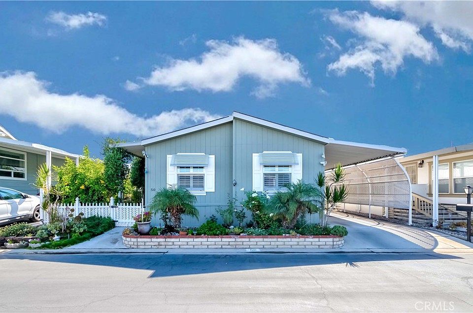 Welcome to Casa Hermosa Mobil Park! Just next to Dad Miller Gilf Course, and the Tiger Wood Academy. This is 55+ senior MHP. Community pool and spa, club house. And on to the house: Remodeled the kitchen...Qualtz counet top, stainless steel appliances. Plantation shutters...Naminate wood floors, Cathedral ceilings, punctuated by high windows, skylights and recessed lights. Freshly painted, meticulously maintained. Extra long arpot, garden.