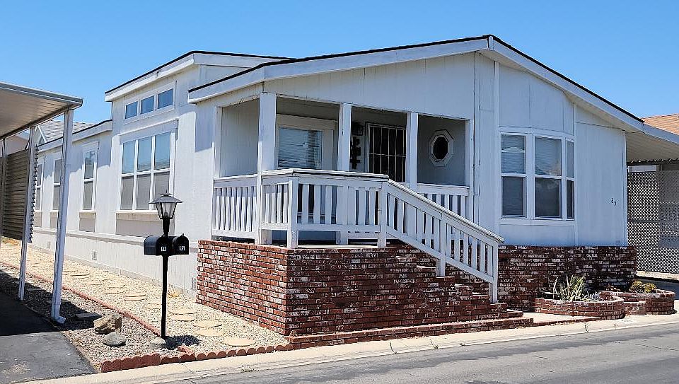 FINANCING AVAILABLE ON THIS MOVE-IN READY 2003 Manufactured Home in ANAHEIM SENIOR PARK that has 1416sf+3 Bedroom 2 Bath. Home features a sun deck in front w/stairs to access front door. New Flooring THROUGH OUT. Lots of Windows bring in Natural light in all rooms. Fresh Interior+Exterior Paint. Kitchen has Large,Open floor plan & features Breakfast nook area, bay window, dishwasher+stove, skylight above work island +lots of upper & lower cabinets. Kitchen opens to a formal dining room. Living room has raised ceiling and upper windows for an enormous amount of light to enter this space. Home has a separate utility room w/washer & dryer hookups. Other 2 bedrooms are roomy with large closets and dual pane windows. Guest bath has tub/shower combo with vanity. Large open Master Bedroom is in the back of home, features a large walk-in closet w/ skylight. Spacious Master Bath features tub/shower,sink& vanity. Central HVAC system. Park has night security, New space rent is $1038.
