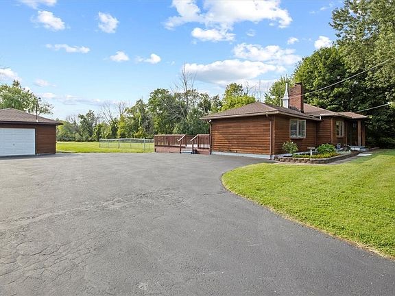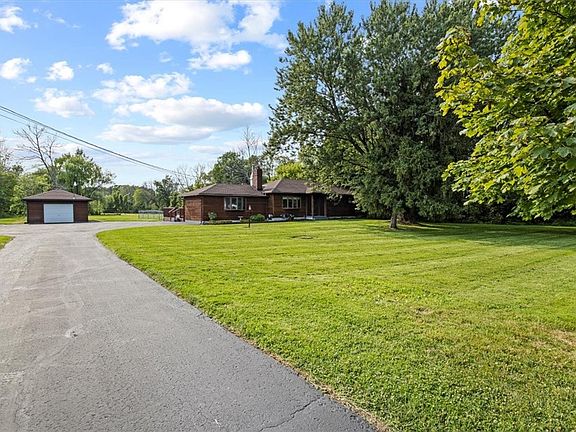 Spacious 3 bedroom, 1 & 1/2 bath Ranch! Formal dining room, cathedral ceilings in great room with wood burning fireplace and gleaming hardwood floors, sprawling kitchen, finished rec. room in basement, enclosed rear porch, fenced area in backyard, beautiful 3.6 acre lot, shed behind garage, pond on property. Large turnaround driveway. (Garage is 2.5 car deep) (There is a well on the property but not in working condition) (Seller to only provide permits currently on file with the Town Of Greece)