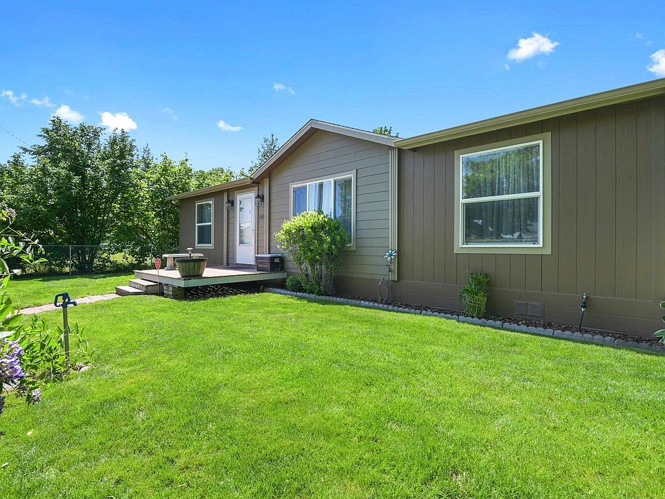 Awesome opportunity in Spokane Valley! Beautifully updated 2004 manufactured home on its own oversized, corner lot with a spacious shop! This 3 bedroom/2bath floor plan includes a generous kitchen with newer appliances and a pantry! Master bedroom suite with walk in closet and private bath. The forced-air heating and cooling is powered by a newer Trane heat pump! Also included is the washer & dryer and enjoy the hot tub on the private, covered, stamped concrete patio! The large, fenced-in yard with fruit trees and in-ground sprinklers system is lush and beautiful. RV parking includes water and an electric hookup! Nice storage shed along with a 20 x 40 shop that is heated and has a 1/2 bath, full concrete floor, and an oversized automatic door! Great convenient location with lots of parking for toys too! Call today for more information or to schedule a private showing!