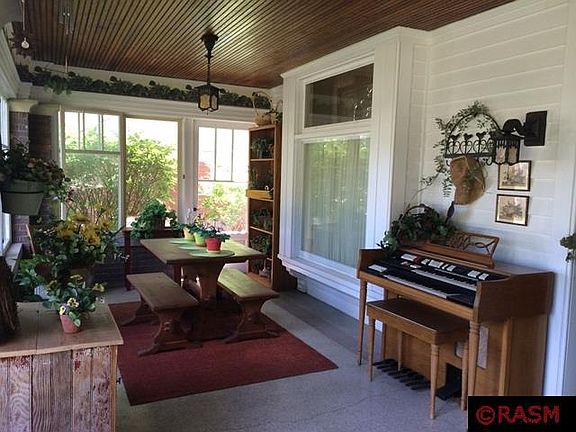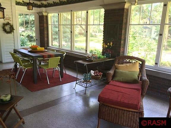 Magnificent turn of the century 5 bedroom, 3 ½ bath home that sits on a large, beautifully landscaped corner lot with lots of shade trees. From the moment you step into the 3-season porch with terrazzo floors, beadboard ceiling, and walls of windows you will appreciate all of the character and charm in this home with original woodwork throughout. The front foyer is very impressive with the open staircase, inlaid floors and panoramic view of the main floor. The main floor features a spacious living room with inlaid floors, window seats, and wood burning fireplace, formal dining room, recently renovated kitchen (with in-floor heat), and den. The 2nd floor hosts 3 bedrooms, plus ensuite master bedroom with two rooms (one could be another bedroom) with recently renovated master bath with air tub and custom tile. There is another recently renovated full bath with beautiful custom tile on the second floor, plus a large closet and access to the walk-up unfinished attic. The finished basement has a large rec area with pool table, family room with kitchenette, office, laundry and bathroom with two person whirlpool tub and separate shower, plus tons of storage. The double car detached garage was built in 1998. Newer siding and shingles, zoned heating for each floor, extra insulation in 2014, wiring and plumbing updates and so much more. This home has only had 6 owners and has been meticulously maintained over the years. To fully appreciate this incredible offering, call O/NE Realty to set up a showing.