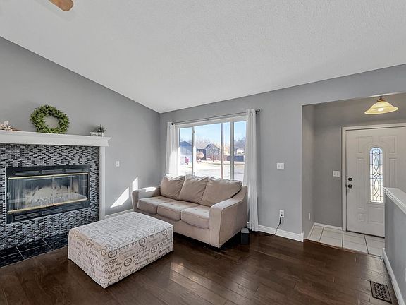 -Quiet Cul-De-Sac home 4 Bedroom, 3 Bath Ranch located on a Cul-De-Sac. Updated kitchen with Granite Gray Pearl Counter tops, white subway style back splash, floor, sink, faucet, disposal, white cabinets and Stainless Steel Appliances with white trim. The Living room Fireplace face and firebox replace. Hardwood Floors and trim. Main Floor Laundry room. Master bedroom with master bath and walk in closet. Basement has Large Family/game room, 3rd Bath and the 4th Bedroom with Large Walk-In Closet, along with a Bonus Room/Office Space and additional Storage Room. Patio Sky coverage for back yard. Quite small town living with easy commute to city!