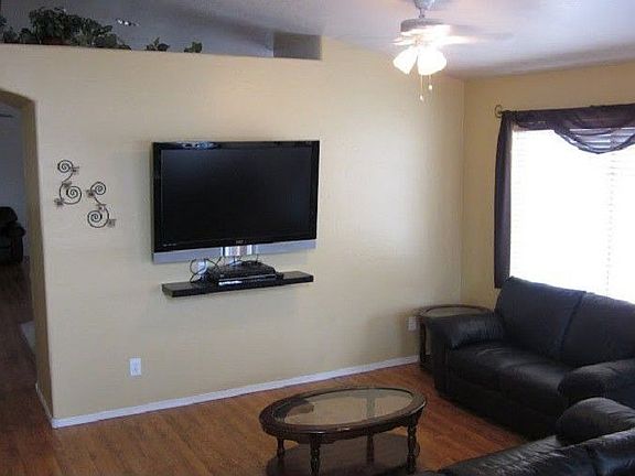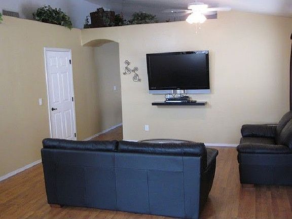 Great Home in Quiet Community. Traditional Sale! Vaulted ceilings throughout makes very spacious feel, recently painted outside and in, wood laminate flooring. Open kitchen has beautiful pot rack, island w/breakfast bar, and upgraded stainless steel appliances. Master Suite with large walk in closet, remodeled master shower. Newer carpet is only in the bedrooms. Newly laid tile in the bathrooms. Open the new French doors out to Covered patio with added concrete perfect for BBQ/patio set, gr...