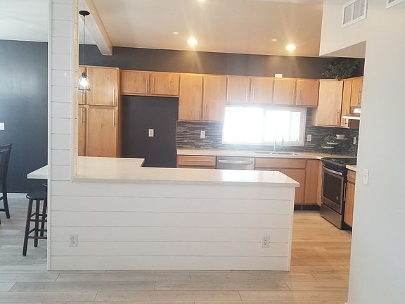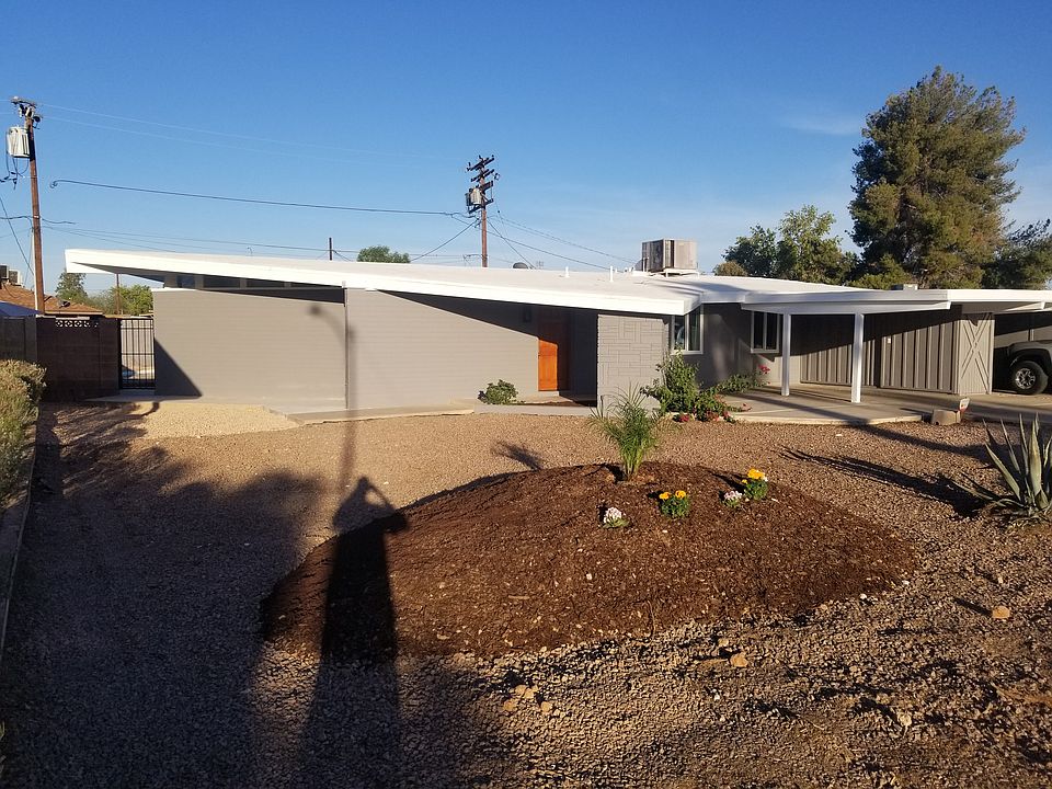 This house is a complete remodel. This fantastic mid century contemporary has all of the original lines with many modern updates. Brand new A/C, 10 year foam elastomeric roof, new windows, new laminate wood look flooring everywere. The kitchen has high end cabinets with new quartz counters, new stainless range and dishwasher. There are new lights and fans throughout. Both bathrooms have been completely remodeled. The diving pool has all new pump and filter. Did I mention there was a nice sized garage in the rear yard with a large R/V cover with rear alley access? Come and take a look, it will go fast!