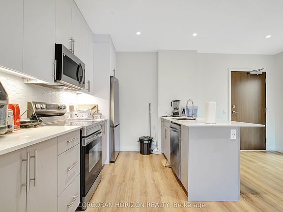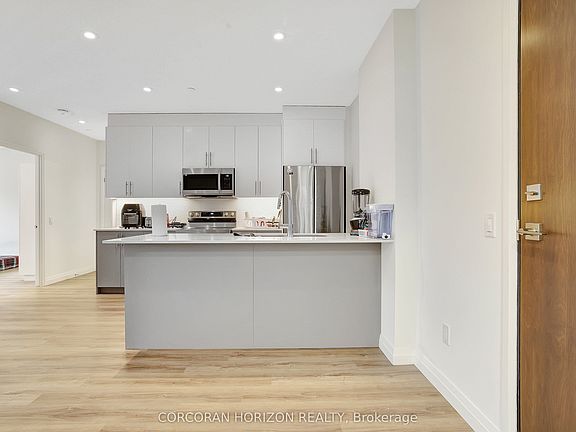 Welcome to Unit 203 at 525 New Dundee Road a stylish 2-bedroom, 2-bathroom condo offering 1,055 sq ft of thoughtfully designed living space, plus a private 100 sq ft balcony for relaxing or entertaining outdoors. Step into a bright, open-concept layout that seamlessly connects the kitchen, dining, and living areas perfect for modern living. The contemporary kitchen is equipped with stainless steel appliances, a spacious eat-in island with built-in storage, and plenty of counter space to make cooking and hosting a breeze. The primary bedroom features a private ensuite, while the second bedroom is located conveniently near the second full bathroom, ideal for guests or a home office setup. You'll also appreciate the large in-suite storage room with laundry, adding everyday convenience and extra space. This unit includes a dedicated parking space and access to an impressive list of amenities, including year-round enjoyment of the picturesque Rainbow Lake a truly rare lifestyle offering in a prime location!