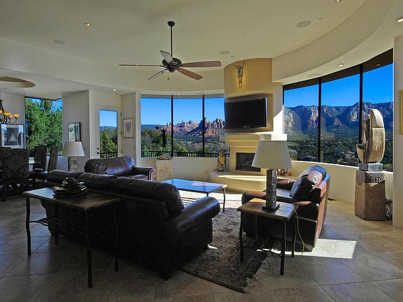 Dramatic, sweeping red rock views from end of the road, top of the world, eagle's nest. Take any one of numerous trails outside your door into the National Forest and when you are relaxing at home, soak in full spectrum sunrises and sunsets to nourish your soul. Designed by Architect Bill Slatton (trained by Frank Lloyd Wright) and built by Lawler Construction (known for quality and attention to detail.) Owner's suite with fireplace, Pella Slider and black out window coverings opens to patio, Jacuzzi and pool; second bedroom features in-suite bath and a private patio and the third bedroom offers views of Courthouse and Bell Rock (can be used as a den or office). Enjoy the graciously appointed kitchen with center island workstation, granite counter tops,