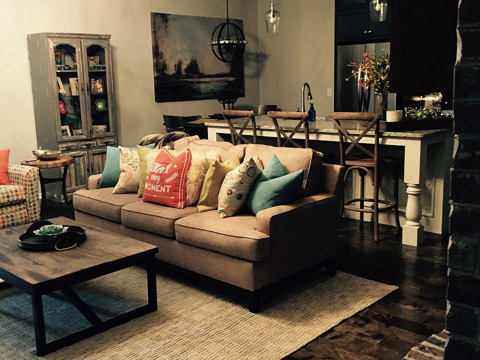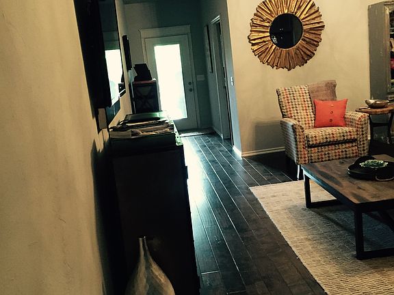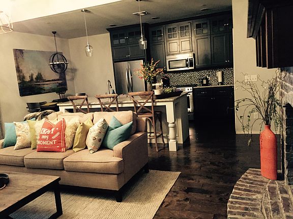 Lock and GO! Easy maintenance free living. This town home is exceptional and LOADED with upgrades. Enjoy a neighborly conversation on the cute front porch or your back patio. Open floor plan with gorgeous wood floors and high ceilings. Upgrades include; granite counter tops throughout, high-end light fixtures throughout, kitchen back splash, custom bathroom vanities (dual vanities in the owner's retreat), carpet just replaced, dishwasher newly replaced, brick wall in owner's retreat, wood shutters throughout, storm shelter, and epoxied garage floor for easy cleaning. Wired for surround sound. Fire suppression system and firewalls between units also provide privacy. Wall mounted tv's stay with the home. HOA maintains complete lawn & flower bed care along with all exterior maintenance. The posh clubhouse includes a kitchen, outdoor fireplace and nice workout facility. 10 year warranty expires 2024. Prime location just East of I-35 for easy commuting around the city. Bring your suitcases!