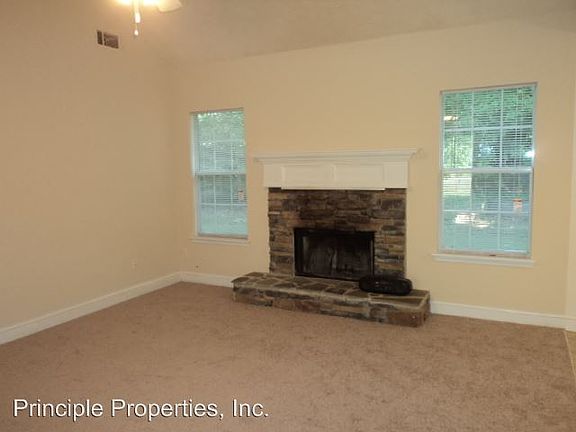 Welcoming Ranch with large level yard - Step less ranch features living room with fireplace adjacent to an open, eat-in kitchen. Master has double trey ceilings, ceiling fan, walk-in closet and bath features include separate garden tub and shower. Secondary bedrooms are a really nice size. Beautiful large level lot with pretty trees. Also has separate storage building and private back patio. One pet allowed under 20 lbs with application and fee. Must qualify. (RLNE2315093)
