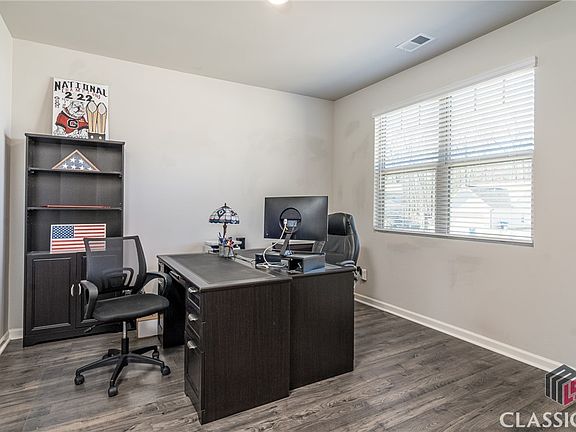 Beautiful, practically new home superbly located between Hwy 316 and Atlanta Hwy, just a short drive to downtown Athens and UGA. This cul-de-sac home is one of only a handful of basement lots in the Jennings Mill Corners neighborhood. The main level has luxury vinyl flooring, a half bath, an office off the foyer, attached 2 car garage, and a dining area. The kitchen is spacious and modern with granite countertops, stainless appliances, and large island. The back deck overlooks the large fenced backyard and the wooded lot beyond. Upstairs is 3 large bedrooms and 1 full bath, along with the laundry room and a massive owner's suite. The full unfinished basement is stubbed for another family room, bedroom and full bath. There is an entrance to the backyard patio from this level. This property has been meticulously maintained for the past 2 years and is move-in ready.