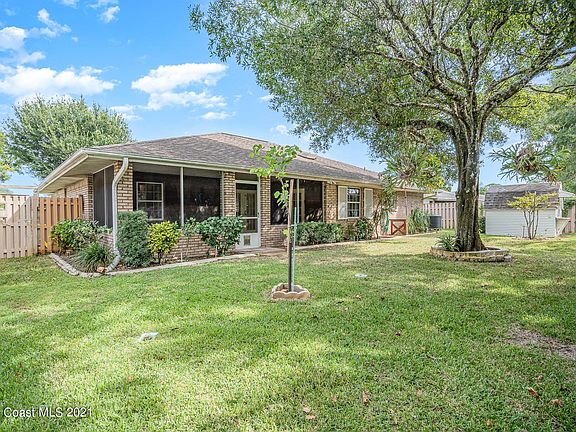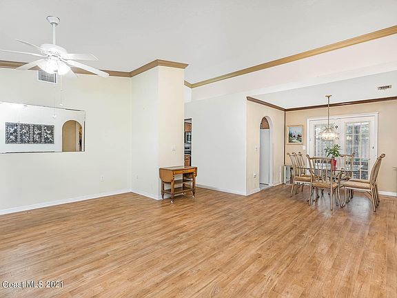 ** BUYER BACKED OUT BEFORE INSPECTIONS** This 3BR/2BA home in West Melbourne is ready for new owners to make it their own! You will appreciate the vaulted ceilings and crown molding upon entry, and the set of french doors lead out to the cozy brick porch that overlooks the private backyard. The kitchen offers an eat-in area w/ Oak cabinetry, recessed lighting, and newer SS appliances. The eat-in- area opens right out onto the porch for entertaining. The garage is an oversized garage with a side entry door, and you will love the backyard. Excellent location, close to shopping, restaurants, the beaches, L3Harris, Grumman, and more!