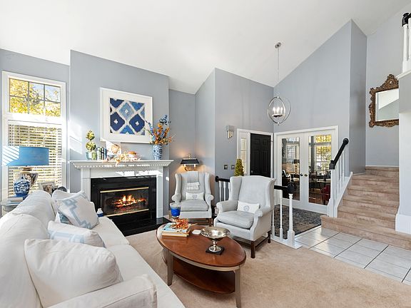 Rarely available end unit with loads of natural light! Vaulted ceilings! Stunning Living room with cozy fireplace and gorgeous views of yard! Dining room with vaulted ceilings and access to patio for BBQ's! Fabulous Kitchen with an abundance of prep space, pantry, planning desk and all appliances! Separate eating area in bay window! Main Level Office/Den/Study with dramatic french door entry. Master suite fit for a King with vaulted ceilings, large walk-in closet and private luxury bath! Large 2 car garage. Near clubhouse and pool. Guest parking across the street. HOA includes access to clubhouse and pool, common insurance, exterior maintenance, lawn care and snow removal. Taxes do not reflect a homeowner deduction.