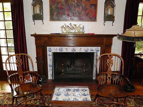 This Colonial home features Shingle and Stone exterior, Slate roof, 2 car Detached Garage, Hard Wood and Tile floors, 6 fireplaces, Gas and Forced Air heating, 5 bedrooms, 3 full bathrooms, 1 partial bathroom, Automatic Garage door opener, Disposal, Dish Washer, Gas Stove, Microwave Oven, Pantry, Refrigerator, Screens, Storm Windows.