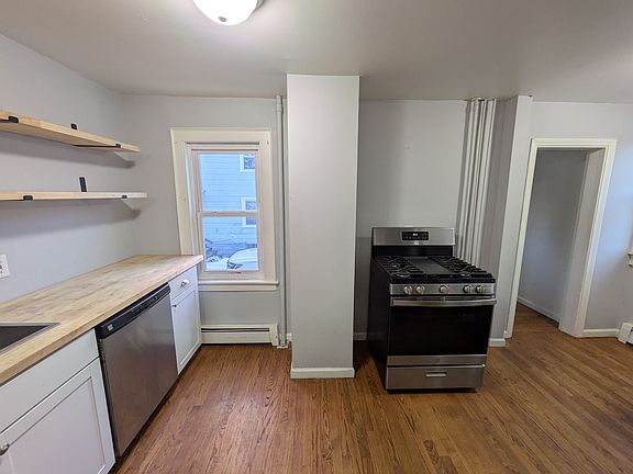 Spacious 1st-floor apartment featuring 2 large bedrooms and 1 full bathroom with a shower. Enjoy a huge living room area and a kitchen equipped with a gas stove, refrigerator, and dishwasher. Laundry hookups are available in the basement. The apartment also offers off-street parking, hardwood floors, and gas heating. tenant must pay utilities