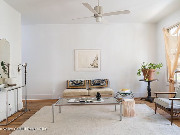 An extremely handsome, beautifully appointed, flooded in light, lovely residence on a wonderful quiet street. A stunning master bedroom with a beautiful en suite bathroom. A charming guest room with bath en suite. The kitchen is open to the living room and there is another living room/ extra bedroom/home office. The basement is dry and large. There is a lovely shade garden that is heavenly cool in the hot Hudson summers. There are 4 garages with great future potential.Solar panels on the roof, property of the owner. Simply, 525 Prospect is a very considered and wonderful home.
