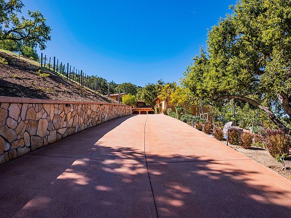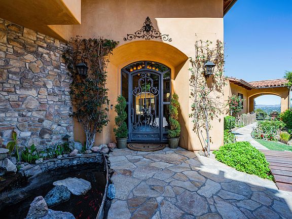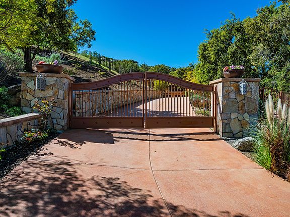 Custom Tuscan masterpiece for sophisticated buyers. Gated, private view property w/approx 3.74 acres. You'll fall in love w/this elegant property & the lifestyle it offers. Close to amenities of the city yet tucked away in a private paradise. Savor its beauty & details from its stonework entry to graceful archways to the gourmet island kitchen w/wood beamed ceilings & Viking appliances. Outdoor kitchen, covered entertainment area w/fireplace, tranquil infinity-negative edge pool. Charming interior courtyd w/fireplace & fountain & Zen garden w/Koi pond w/private entry to Master BR balcony. Expansive vistas of the Conejo Valley! Manicured landscaping & stately drive lead past 2 separate guest houses w/ their own garages and 120 cabernet sauvignon vines to the majestic main house. A protected goldfish pond w/5 turtles greet you as you enter the travertine foyer of your new home. Children love the quaint playhouse w/its own slide! State-of-the-art systems include a Sono controlled sound system thruout the home & yard, a Lutron system for lighting & fountains, Nest therm controls, updated alarm system & a recently refurbished 23 KW paid solar system. Newly refinished 2-stall barn & tack room has an adjacent riding ring. Many fruit trees on drip system.
