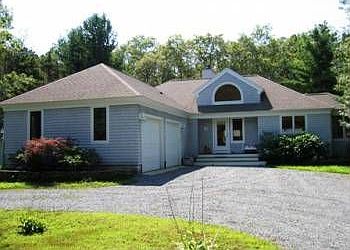 Marstons Mills- Unique contemporary ranch offers open floor plan, cathedral ceilings, gas fireplace and floor to ceiling built in shelves. The kitchen features granite counters, newer appliances & oak floors. There is a finished lower level walkout with approximately 900 square footage used as a media room, exercise and guest room. Central air, two car garage and private 1.25 acre parcel complete the package. $459,000