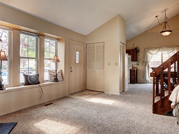 Come home to this open & bright condo w/great curb appeal~quick & convenient highway access~award-winning D-20 schools~Discovery at Ravencrest offers all this plus an on-site swimming pool~vaulted ceilings in living room with skylights & a stacked stone wood burning fireplace~ceramic tile flooring in the entry & kitchen~BRAND NEW CARPET THROUGHOUT~full size washer & dryer~patio off dining area is fenced & includes a storage shed~upper level has great views of the bluffs to the east & overlooks open space in rear~very quiet end unit~pets are welcome!