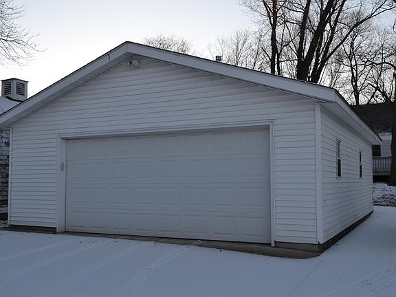 4 bedroom house with central air. 2 bedrooms upstairs and 2 bedrooms on main level with hardwood floors. Nice big kitchen with new stove. Refrigerator and dishwasher included. Dining room with wood burning stove and living room with hardwood floors. Water softener and laundry hook-ups in basement. French doors onto deck. Large insulated and heated 2 1/2 car garage complete with lighting, 60 amp service and security system, all set up for a nice workshop. Additional parking slab next to garage. Credit and background check required. Call or text Lee at Rent includes water and sewer. Tenant pays other utilities.