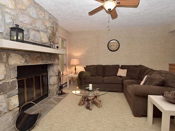Welcome to Crestwoods Village, a lovely townhouse community tucked away between Pocono Pines & Long Pond, and ideally situated for escaping the crowds yet w/easy access all the fun Pocono stuff like skiing, hiking, casino & waterparks. The community offers manicured roadways for meandering, biking, or riding to various 1st class amenities like a pristine lake w/beach, pool club, tennis courts, fitness, golf & pickle ball. This unit is lovingly maintained & very clean, and is being offered fully furnished. The main floor features an open floor plan w/beautiful stone fireplace & wet bar in the living room, stainless steel appliance package in the kitchen, and a deck off of the dining area for enjoying the outdoors. Bedrooms are light & bright, master BR has a fireplace too! Come & be wowed!
