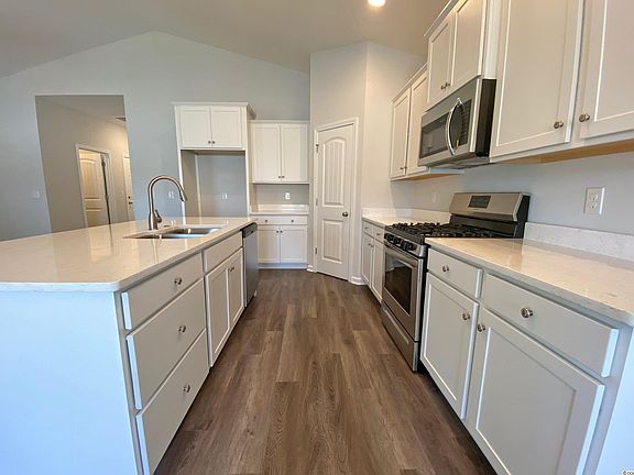 This NEW Topsail model has it all! 3 Bedroom 2 Bathroom with and a 2 Car Garage. at 1543 +/- This Open concept home with a modern design Sits on a spacious lot. The floor plan features lots of windows and 9ft. ceilings With vaults allowing natural light to flow in. The living and dining rooms are adjacent to the kitchen which makes entertaining easy and effortless. This Kitchen includes Quartz countertops, Benton white painted cabinets, and stainless appliances. Come see all the insightful features designed with you and your lifestyle in mind including a split bedroom layout, beautiful yet durable Waterproof Laminate flooring Pictures are of a similar home and are for illustration purposes only